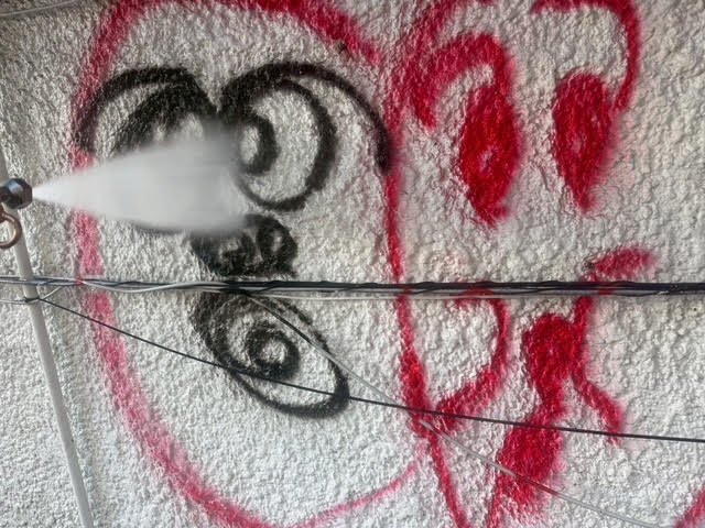 落書きも多く、しっかり洗浄を行ってからの塗装作業を行いました。