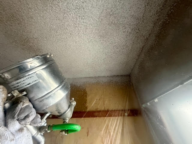 厚木市内にあるUR(団地)の天井吹付作業になります。