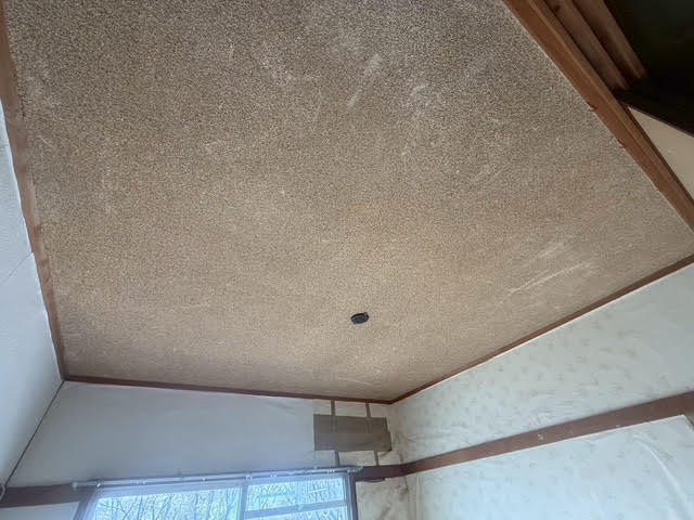 この天井材は昭和から使われている建材で、初期の建材にはアスベストが含まれている事が多いです。