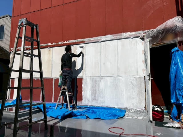 別の塗装屋さんが工事していた途中での引継ぎになります。どんな理由があったかわかりませんが、弊社へご依頼頂きました‼